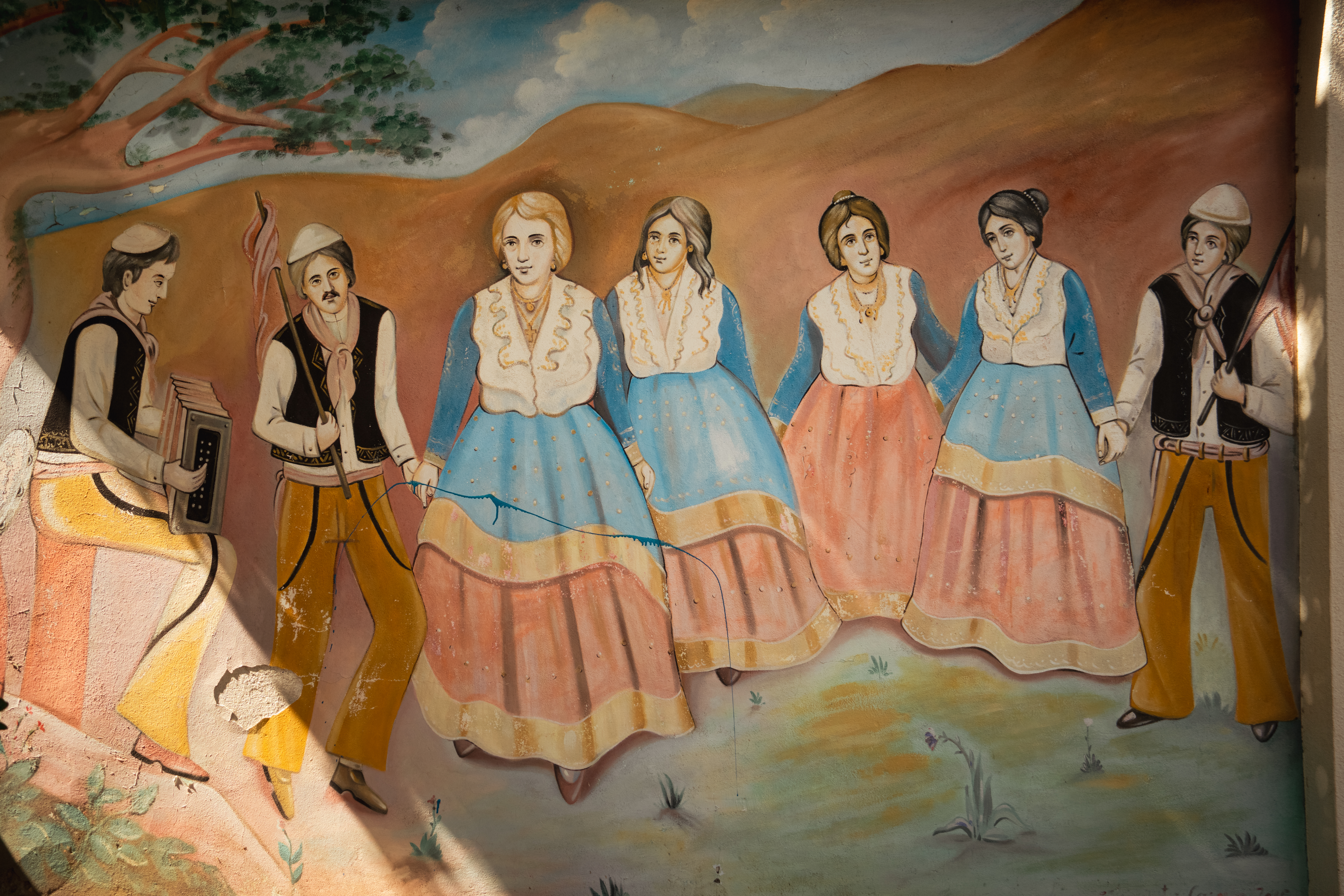 Addentrandosi fra i vicoli si scopre l’assetto di una tradizionale gjitonia arbëreshë, ovvero il tipico centro storico composto da case di piccole dimensioni disposte a semicerchio attorno a una “casa madre” e una piazzetta comune, che è il centro della vita della comunità.
