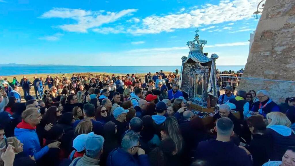 Il momento più intenso è la processione notturna che accompagna l’icona sacra dalla cattedrale di Crotone fino al santuario, in un cammino lungo dodici chilometri che attraversa la notte e unisce fede, sacrificio e partecipazione popolare. Decine di migliaia di fedeli, pellegrini e curiosi si muovono insieme, creando un’atmosfera unica, carica di emozione.
